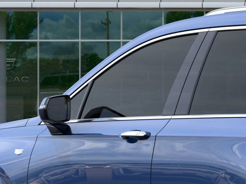 - Opens or closes when the system senses the key fob and the driver extends their foot under the left-hand side of the rear bumper over an image of the Cadillac Crest projected under the vehicle